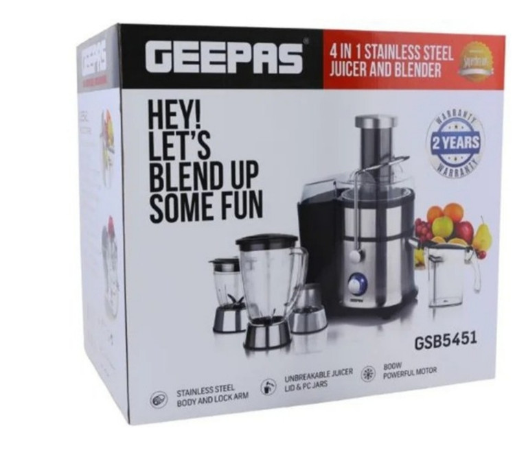 مخلوط کن و آبمیوه گیری جیپاس مدل GSB5451 ، دارای موتوری با قدرت 800 وات، و مجهز به عملکردی چندکاره می باشد.این محصول از بدنه ای به جنس استیل ساخته شده است. با طراحی منحصر به فردی که برای این دستگاه در نظر گرفته شده است، به راحتی می توان از نوشیدن یک لیوان آبمیوه طبیعی و خانگی لذت برد.میوه به کمک اهرم فشاردهنده وارد دهانه ورودی دستگاه می شود. به کمک تیغه های فولادین و تیز این دستگاه،آب میوه گرفته شده و تفاله مربوط به آن به صورت خودکار در مخزن تفاله آن جمع خواهد شد.