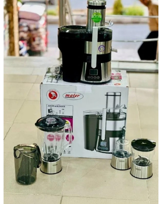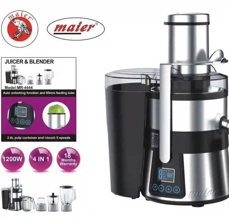 آبمیوه گیری 4 کاره مایر دیجیتال مدل MR-4444 بسیار پر قدرت بوده و توان مصرفی آن 1200 وات است که برای آماده کردن آبمیوه های تازه و خوشمزه بسیار پر کاربرد میباشد. به کمک این دستگاه 4 کاره میتوانید کارهایی مانند؛ آسیاب کردن و پودر کردن انواع دانه ها، خردکردن میوه و سبزیجات، مخلوط کردن چند میوه وآماده کردن یک نوشیدنی بسیار مفید و سالم را در زمانی کوتاه و با آرامش در خانه انجام دهید. همچنین این دستگاه دارای 5 دور سرعت مختلف بوده که به دلخواه میتوانید از دور سرعت کند و یا دور سرعت بالای آن استفاده کنید. بدنهی آبمیوه گیری 4 کاره مایر دیجیتال مدل MR-4444 از جنس پلاستیک و استیل است. جنس تیغه ها در هر 4 قسمت از استیل ضد زنگ بوده که دارای مقاومت بالایی هستند.