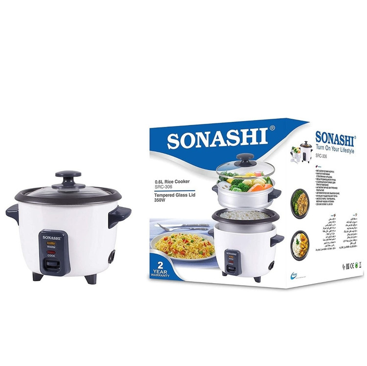 پلوپز سوناشی مدل 306-SRC یک دستگاه کوچک و کاربردی است که برای خانواده های کم جمعیت یا استفاده های شخصی طراحی شده است. ظرفیت ۰.۶ لیتری این دستگاه امکان پخت برنج برای دو نفر را فراهم میکند و به ویژه برای زندگیهای دانشجویی خوابگاهها یا دفاتر کار انتخابی ایده آل به شمار میرود.این پلوپز ساده با توان مصرفی ۳۵۰ وات عملکرد بهینه ای در پخت برنج ارائه میدهد. المنت پایین دستگاه گرما را به شکل یکنواخت پخش میکند و باعث میشود برنج نرم و خوش پخت آماده شود. پس از پایان پخت قابلیت گرم نگه داشتن به کاربر این امکان را میدهد که غذا برای مدت بیشتری تازه بماند.دیگ داخلی از جنس تفلون نچسب ساخته شده که از چسبیدن برنج جلوگیری میکند و شست وشو را آسان تر میسازد. بدنه دستگاه ترکیبی از استیل ضد زنگ و پلاستیک مقاوم است که ضمن سبک بودن ظاهری مدرن و مستحکم به آن بخشیده است. درب جداشونده دسترسی راحت به دیگ و سرو غذا را ممکن میکند و تمیز کردن دستگاه را ساده تر می سازد. وزن سبک ۱.۲ کیلوگرمی و ابعاد جمع وجور ۲۲×۲۵×۲۲ سانتی متری امکان حمل آسان و قرارگیری در هر فضای کوچک را فراهم میکند. سیستم ایمنی خاموشی خودکار نیز امنیت کاربر را تضمین کرده و از روشن ماندن طولانی دستگاه جلوگیری میکند.کنترل پنل دکمه ای با کاربری بسیار ساده تجربه ای بی دردسر برای استفاده روزمره ایجاد کرده است. دفترچه راهنما همراه دستگاه توضیحات کافی برای بهره برداری از تمامی قابلیتها را در اختیار کاربر قرار میدهد.