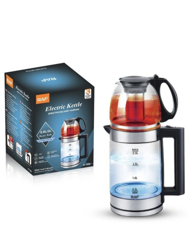 کتری۲ لیتری پیرکس بدون طمع دهنگی به آب،قوری ۱ لیتری پیرکس با توری استیل کفی دو استیل اتوماتیک خودکار هنگام جوش ۱۵۰۰وات دارای چراغ LED آبی چرخش ۳۶۰ درجه ای کتری روی کفی ،با کیفیت عالی و ضمانتی
