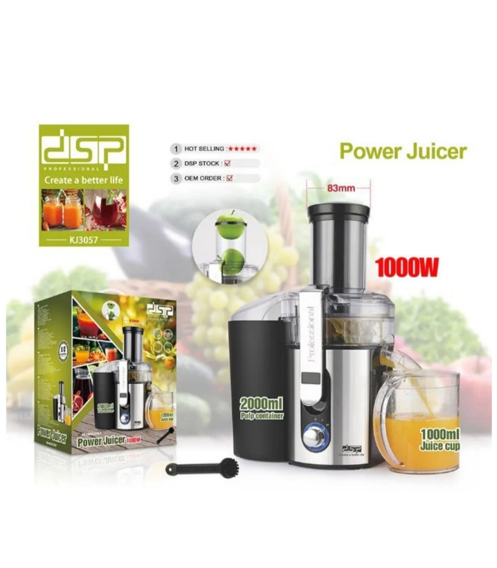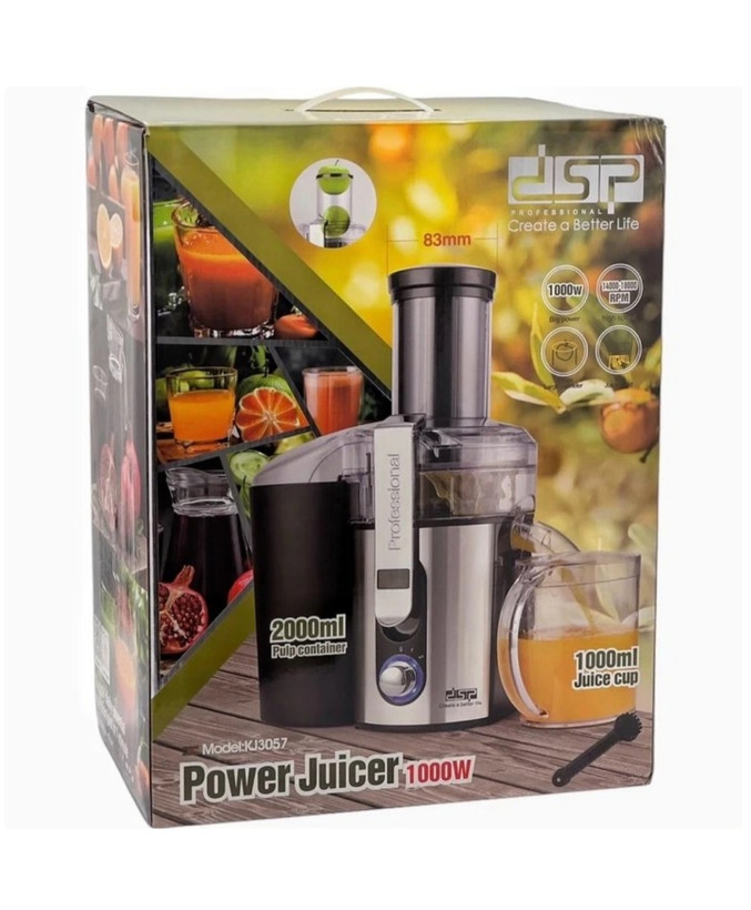 آبمیوه گیری دی اس پی مدل KJ3057 با توان مصرفی ۱۰۰۰ وات، عملکردی قدرتمند و سریع ارائه میدهد. این ویژگی به شما این امکان را میدهد که حتی میوههای سخت و سفت مانند هویج و سیب را نیز به راحتی آبگیری کنید،جنس بدنه این دستگاه از استیل ضد زنگ است که علاوه بر زیبایی و استحکام بالا، مقاومت خوبی در برابر رطوبت و خوردگی دارد. دستگاه در مقایسه با سایر مدلهای مشابه، صدای کمتری تولید میکند که این ویژگی برای استفاده در محیطهای آرام مانند صبحها بسیار مناسب است.