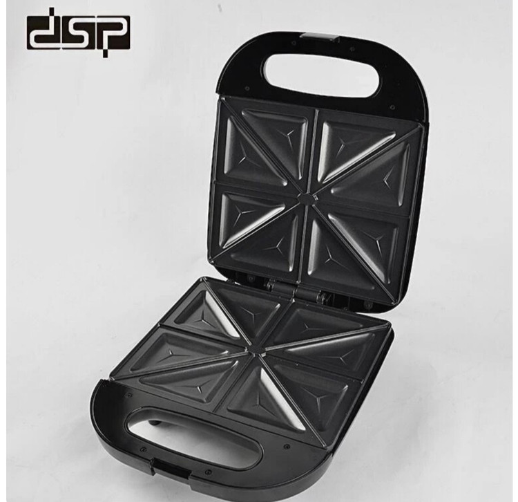 ساندویچ ساز دی اس پی مدل KC1203 دارای قدرت واقعی 1400 وات هست که در دو رنگ مشکی و استیل در بازار عرضه میگردد. جنس بدنه این محصول از استیل و پلاستیک مقاوم در برابر ضربه و عایق حرارتی جهت داغ شدن بیش از حد بدنه میباشد. این محصول تک کاره مجهز به یک جفت سینی با قالب ساندویچ چهار عددی میباشد. لعاب این محصول از جنس تفلون نچسب هست که پس از استفاده به راحتی قابل شستشو و تمیز کردن است. دارای یک ضامن قفل شونده در قسمت جلو که باعث محکم به هم چسپیدن درب اسنک به هم می شود. لعاب های محصول به راحتی قابل قابل شستشو هستن.