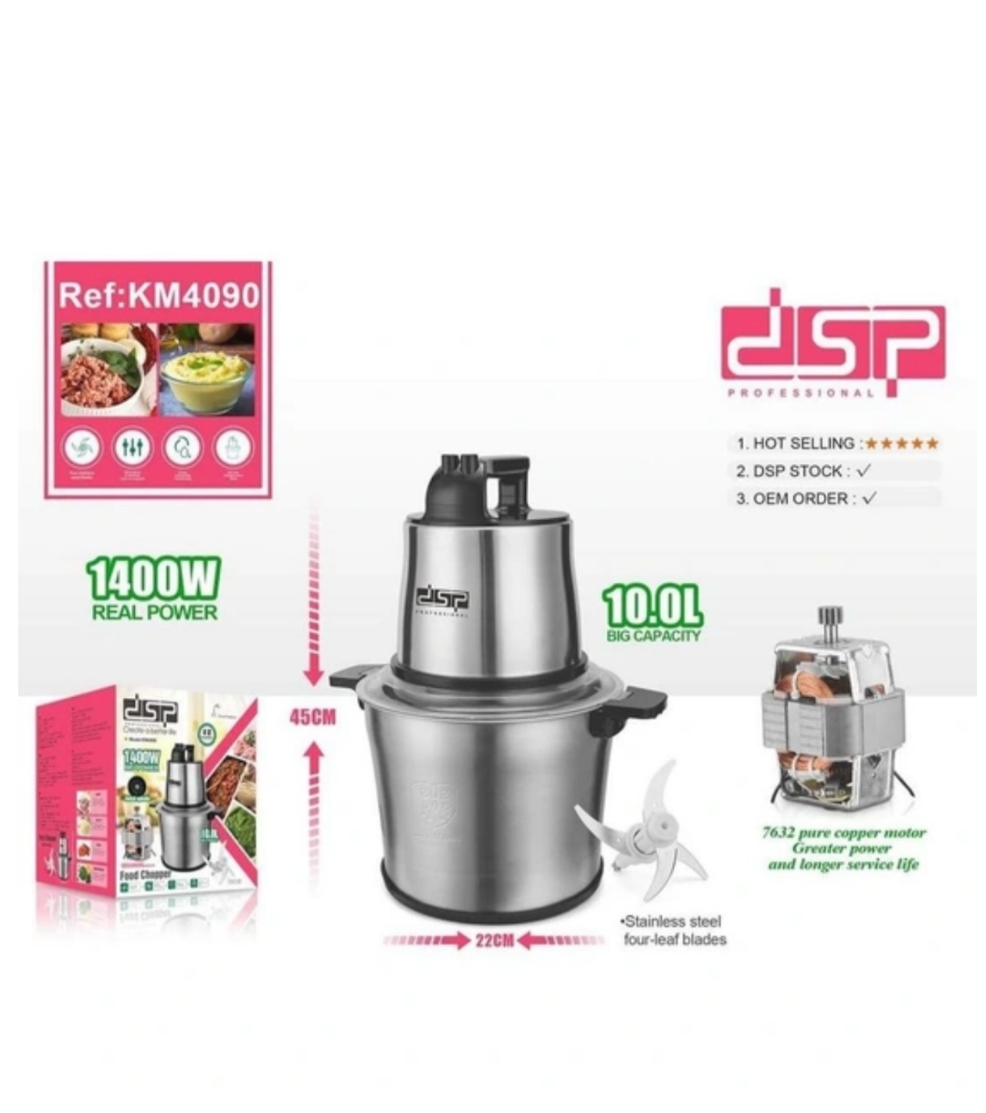 بدنه ی این محصول تماما استیل بوده و در برابر ضربه های احتمالی موجود در آشپزخانه مقاومت بالایی را از خودش بروز می دهد. همچنین استیل این محصول از نوع ضد زنگ بوده و در برابر رطوبت های موجود در سطوح مختلف مقاومت بالایی را دارد.حجم کاسه ی این خردکن 10 لیتر بوده که در همان بار اول مقدار قابل توجهی از مواد را برایتان خرد، ریز، تکه تکه و …. می کند.از این دستگاه می توان در خانه و یا حتی آشپزخانه های بیرونی نیز استفاده کرد.نوع موتور این دستگاه تماما مسی بوده و قدرت بالایی را دارد. توان این دستگاه 1400 وات بوده و به راحتی از پس عملکرد های متفاوت در آشپزخانه بر می آید.