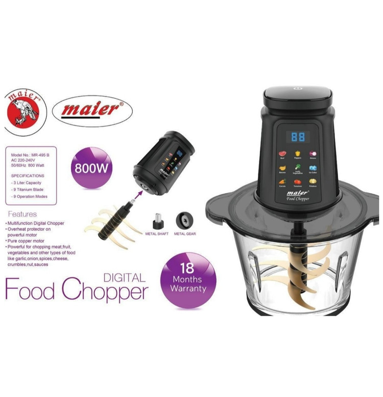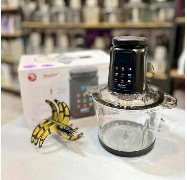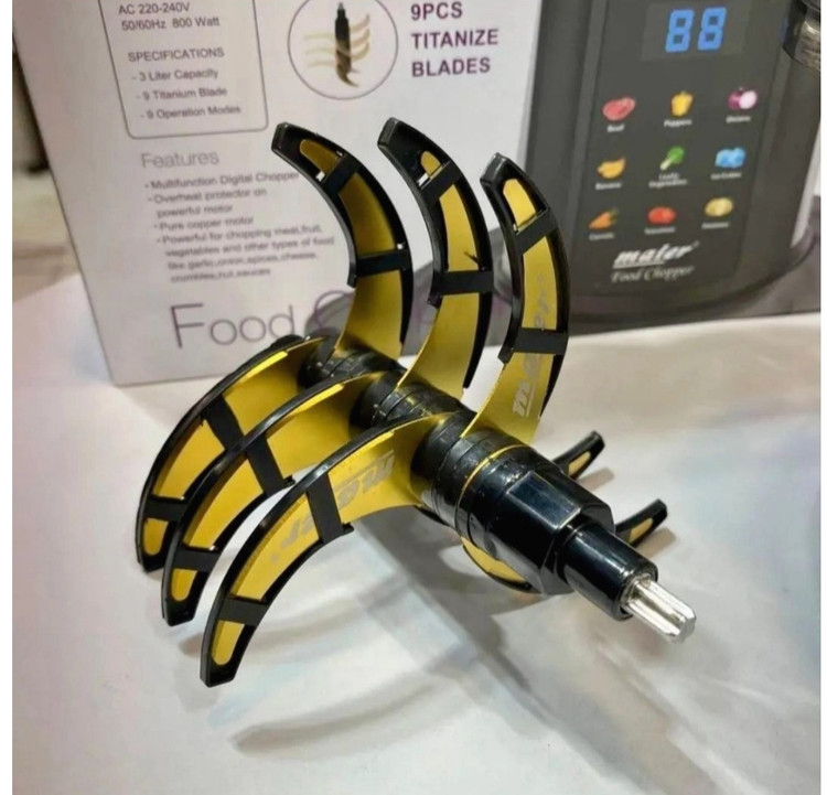 دارای 8 تیغه تیتانیوم میباشد و موتور قابلیت فول کوپر نسوز بوده و صفحه تمام لمس می باشد و بدنه فلزی و استیل ضد زنگ و ظرف سه لیتری پیرکس و دارای پایه ضد لغزش میباشد تحت لیسانس شرکت مایر آلمان ساخته شده است.